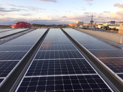 沖縄の特産品を数多く取扱っている会社様の屋上に、当社社員が沖縄に出張し、太陽光発電を施工させていただきました。