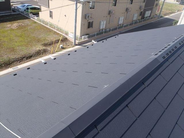切妻のお屋根。スレートの屋根材となっております。