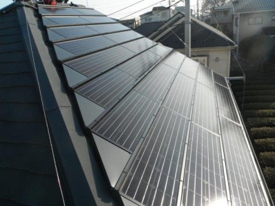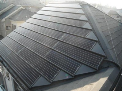 H様邸 3.214kw 屋根材:スレート 設置前の屋根です。 設置中の架台です。 設置後の屋根です。 日立IHクッキングヒーターです。 東芝エコキュート460Lです。 京セラHEMSです。 エネルギーを「見える化」